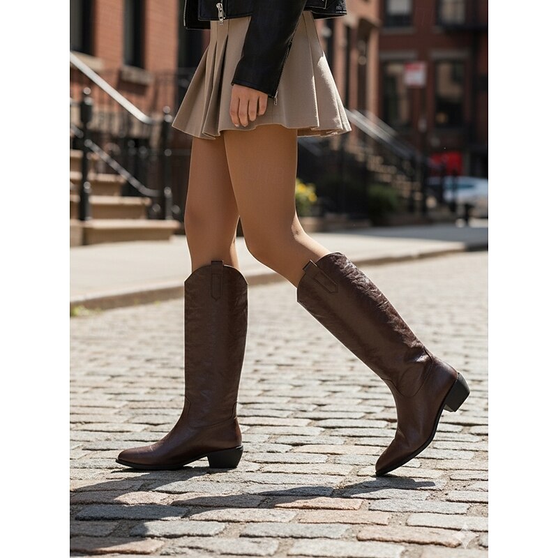 Women's Knee-high Riding Boots with Pull Tabs, Low Heel Comfortable Slip-On Design, Classic Western Inspired Style Fashion Shoes for Urban Casual Wear 7