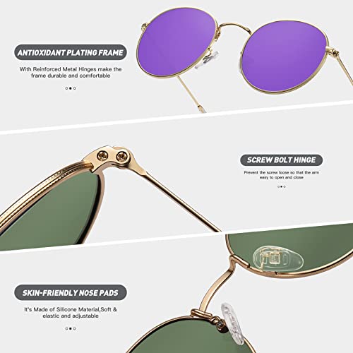 Trendy Retro Round Polarized Sunglasses for Women Men Classic Metal Frame Small Sun Glasses UV Protection 4