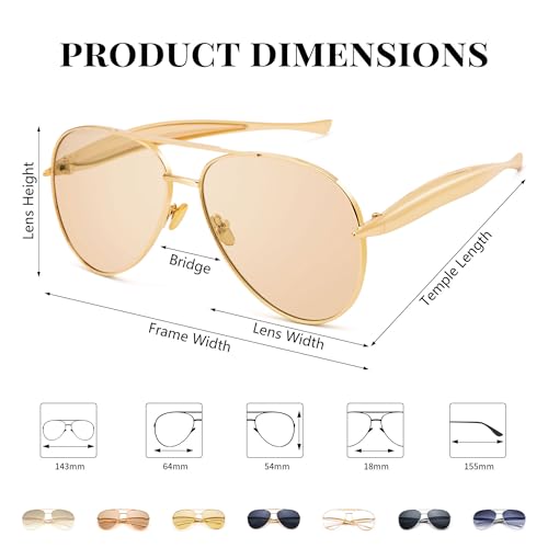 Retro Aviator Sunglasses for Women Men - Oversized 70s Vintage Trendy Gold Metal Avaitors Sun Glasses 5