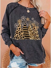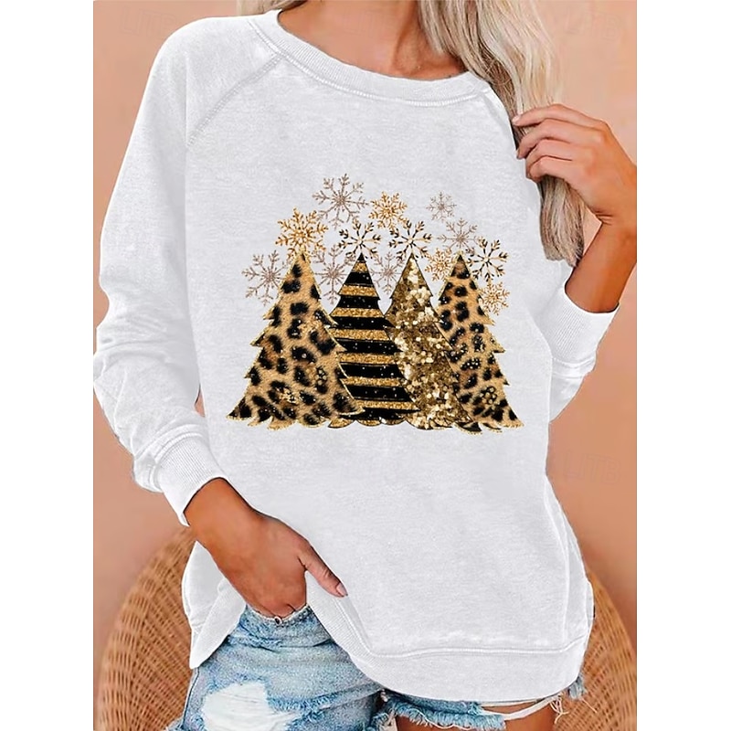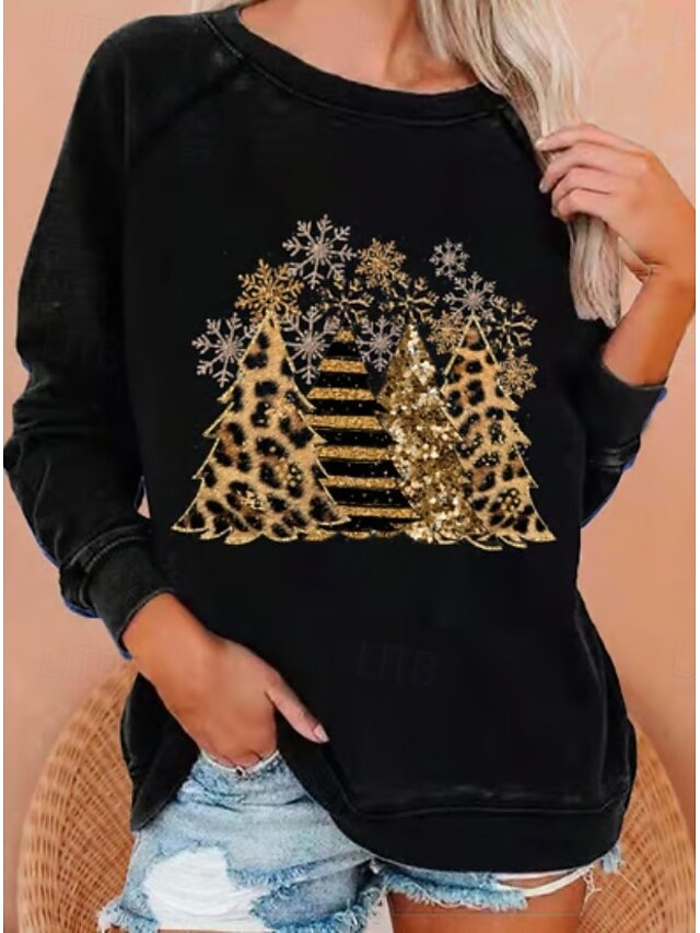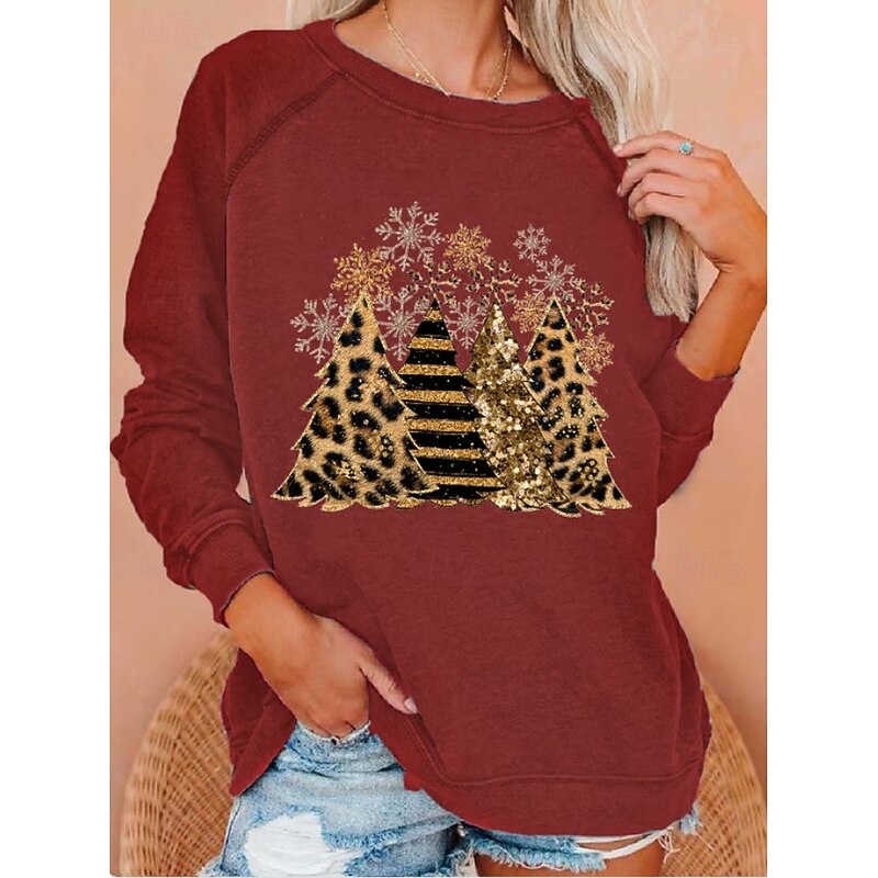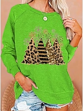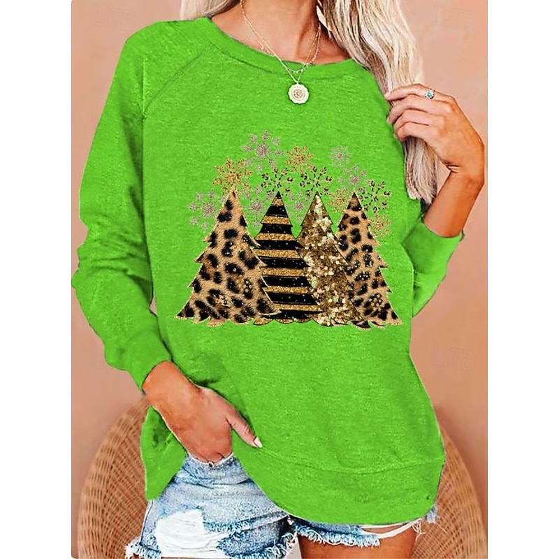 More information about Women's Pullover Sweatshirt Graphic Christmas Tree Fashion Casual Long Sleeve Crew Neck Round Neck Regular Tops Street Dailywear Casual Print Black White Light Green Wine Blue Fall Winter