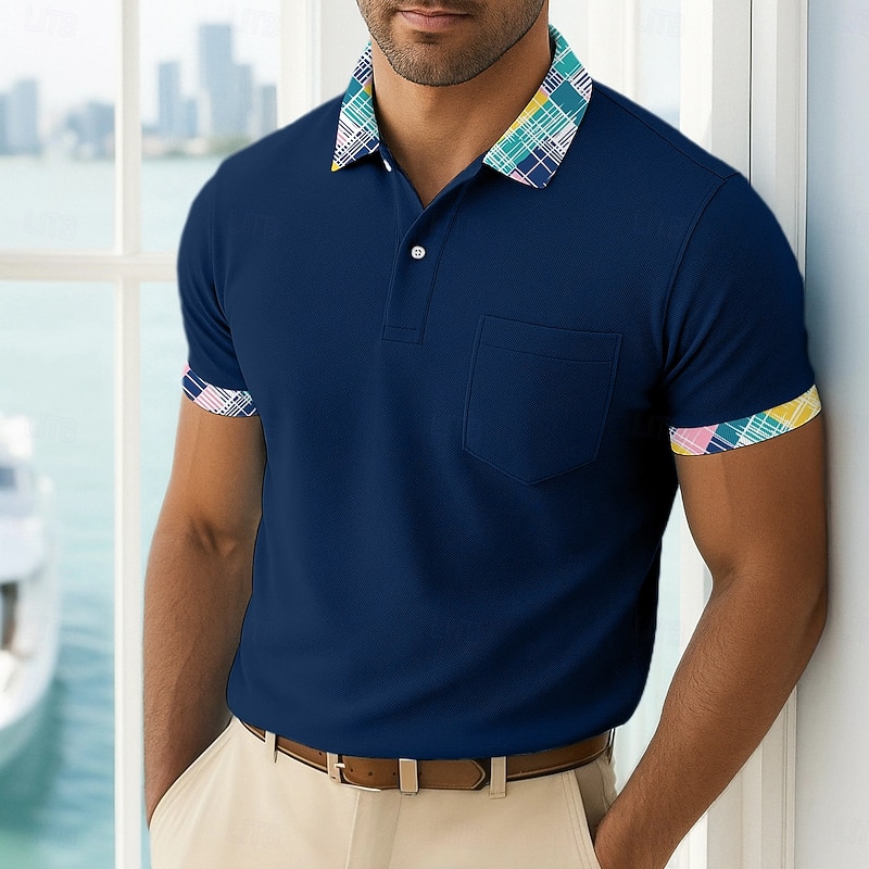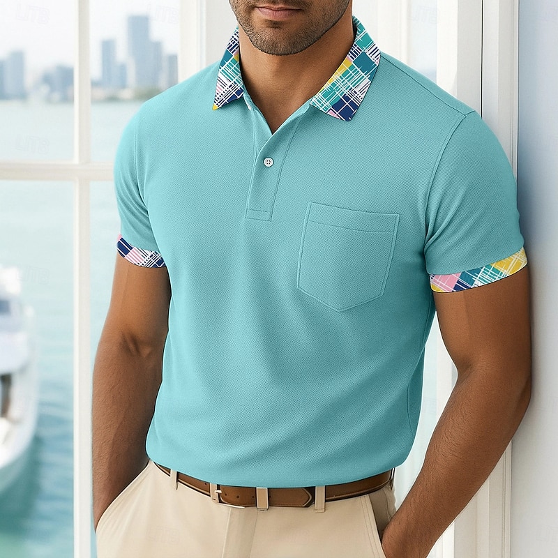 More information about Men's Golf Shirt Vacation Business Classic Short Sleeve Fashion Basic Solid Color Plaid Buttons Summer Spring Spring & Fall Regular Fit White Pink Navy Blue Green Golf Shirt