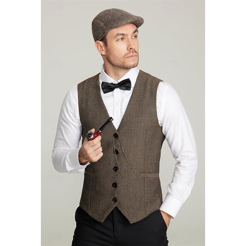 More information about Retro Vintage Roaring 20s 1920s Outfits Waistcoat Accessories Set Gentleman Gangster Fancy Dress Men's Carnival Costume 5 PCS Christmas Halloween Carnival Masquerade Cocktail Party Theme Party Adults'