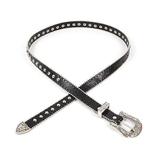 Women's Leather Belt Fashion Skinny Dress Belt Vintage Western Studded Waist Belt 6