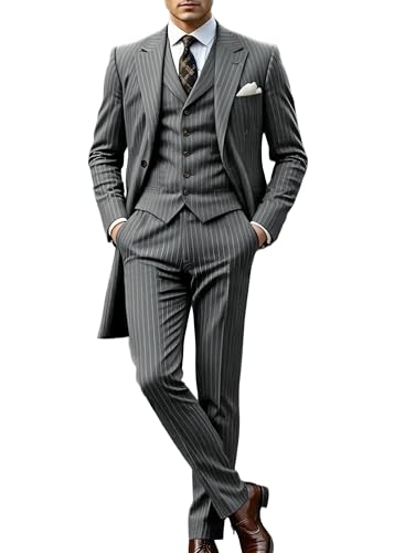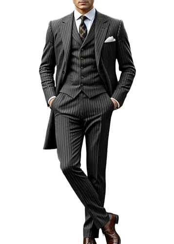 More information about VENNYNG Men's Stripes Suit Peak Lapel 3 Pieces Long Jacket Pants Vest Set Male Formal Wedding Party Set