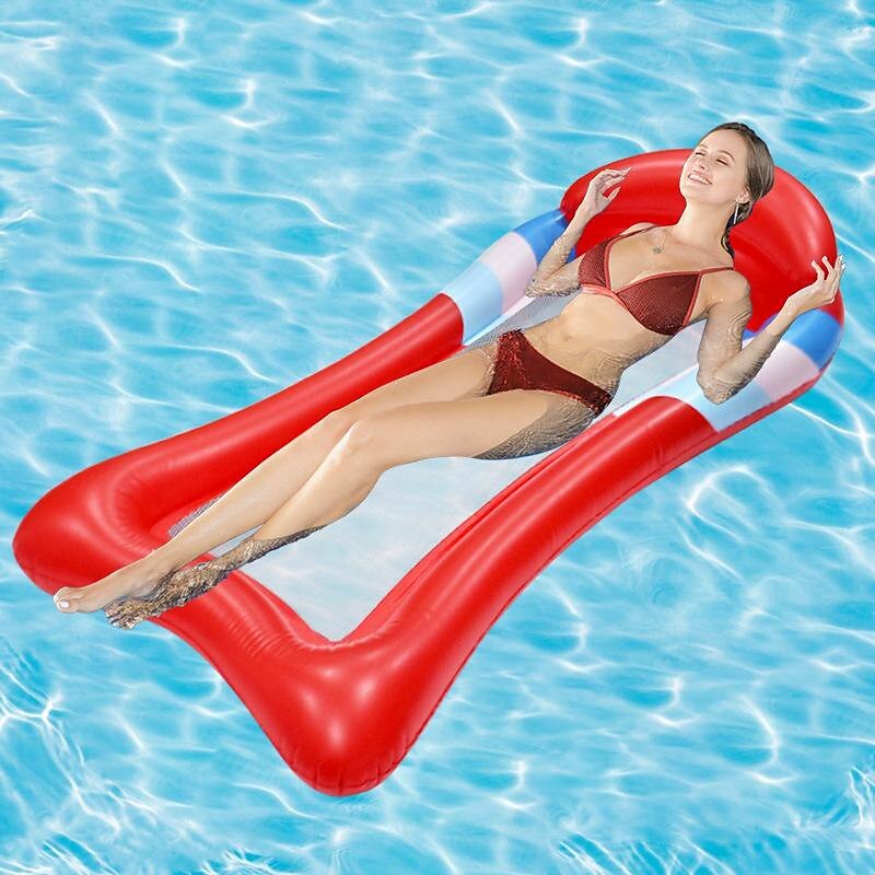 HOT ! Pvc Inflatable Floating Row In Swimming Pool Foldable Water Net Fabric Striped Hammock Adult Amusement Lounge Chair Floating Bed