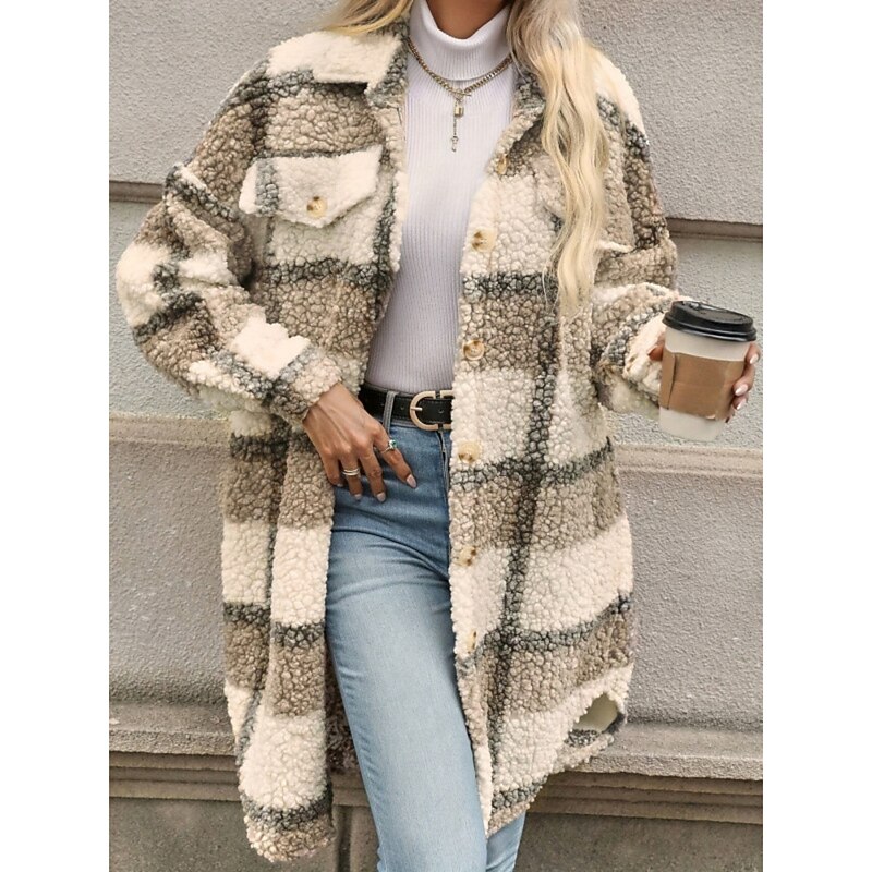More information about Women's Winter Coat Winter Jacket Fleece Jacket Sherpa Jacket Outdoor Street Daily Fall Winter Regular Coat Regular Fit Warm Breathable Comtemporary Stylish Jacket Long Sleeve Stripes and Plaid with
