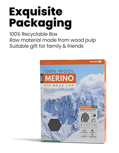 HOT ! Womens 100% Merino Wool Base Layer Top 220 Midweight Zip Neck Tops for Ski