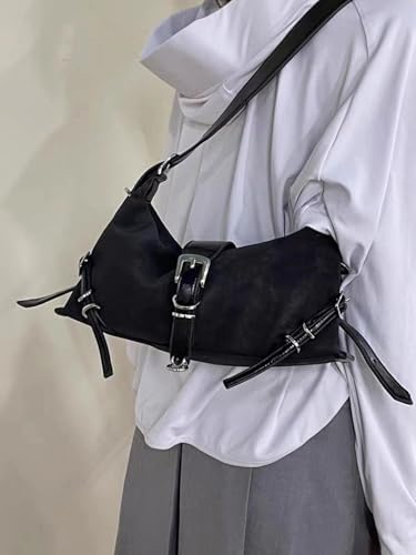 HOT ! Women's Glossy PU Leather Underarm Bag Y2k Buckle Punk Shoulder Bags Retro Adjustable Handbag Clutch Purse