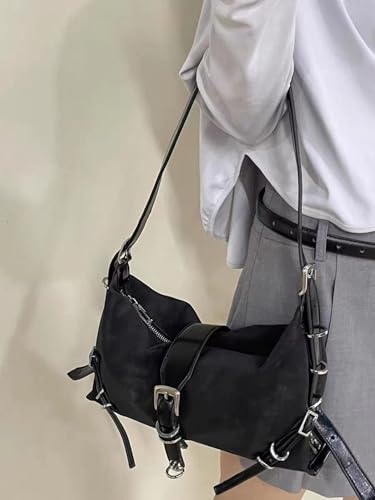 More information about Women's Glossy PU Leather Underarm Bag Y2k Buckle Punk Shoulder Bags Retro Adjustable Handbag Clutch Purse