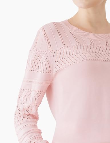 Cable Stitch Women's Pointelle Sleeve Lightweight Sweater - Long Sleeve Crewneck Lace Pullover Top 6