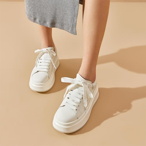 HOT ! BEAU TODAY Platform White Sneakers for Women, Womens Leather Casual Tennis Shoes, Chunky Fashion Cute Comfortable Lace-up Slip-on Dress Sneakers