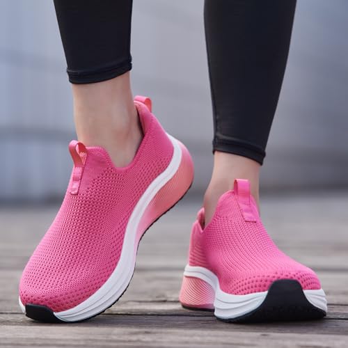 Women's Wide Non-Slip Walking Shoes Lightweight Breathable Sock Sneakers Casual Athletic Tennis Shoes Comfortable Slip On Shoes 10 Rose 6
