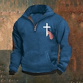 More information about Men's Sweatshirt Waffle Sweatshirt Quarter Zip Sweatshirt Royal Blue Dark Gray Half Zip Letter Print Ribbed Textured Sports & Outdoor Daily Holiday Polyester Streetwear Basic Casual Spring & Fall