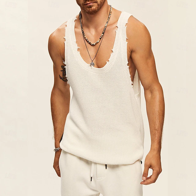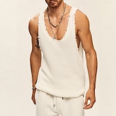 More information about Men's Tank Top Undershirt Sleeveless Shirt Sleeveless Crew Neck Summer Solid Color Designer Distressed Knitted Vacation Home Black White Khaki Top Tee for Men