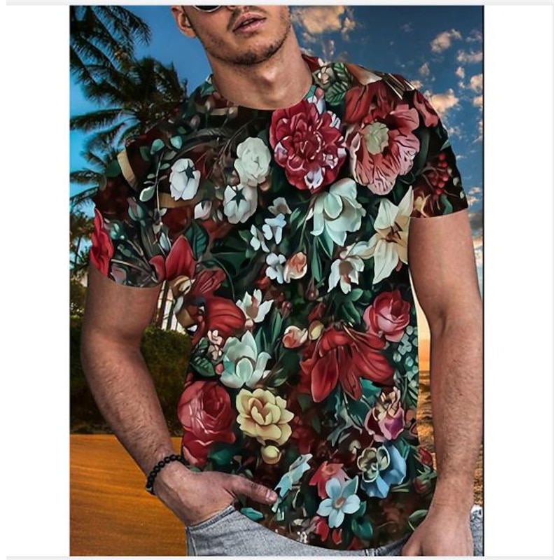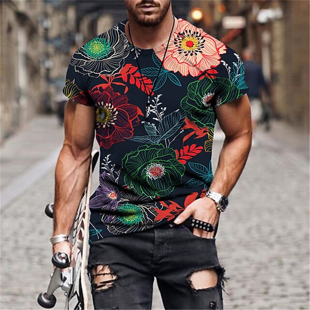 More information about Men's Floral Graphic T Shirt Tee Funny T Shirts Short Sleeve T shirt 3D Print Crew Neck Shirt Hawaiian Designer Basic Casual Daily Weekend B C E Summer Clothing Apparel Plus Size S M L XL XXL 3XL 4XL