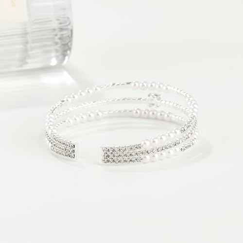 Sparkly Crystal Rhinestone 4 MM Faux Pearl Cubic Zirconia Adjustable Cuff Bracelet Bangle for Women Costume Jewelry 6