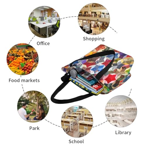 Wonky Star Quilt Fashionable Tote Bag - Durable Reusable Shopping Shoulder Bag With Zipper Pockets, Washable Market Bag For Travel & Beach 6