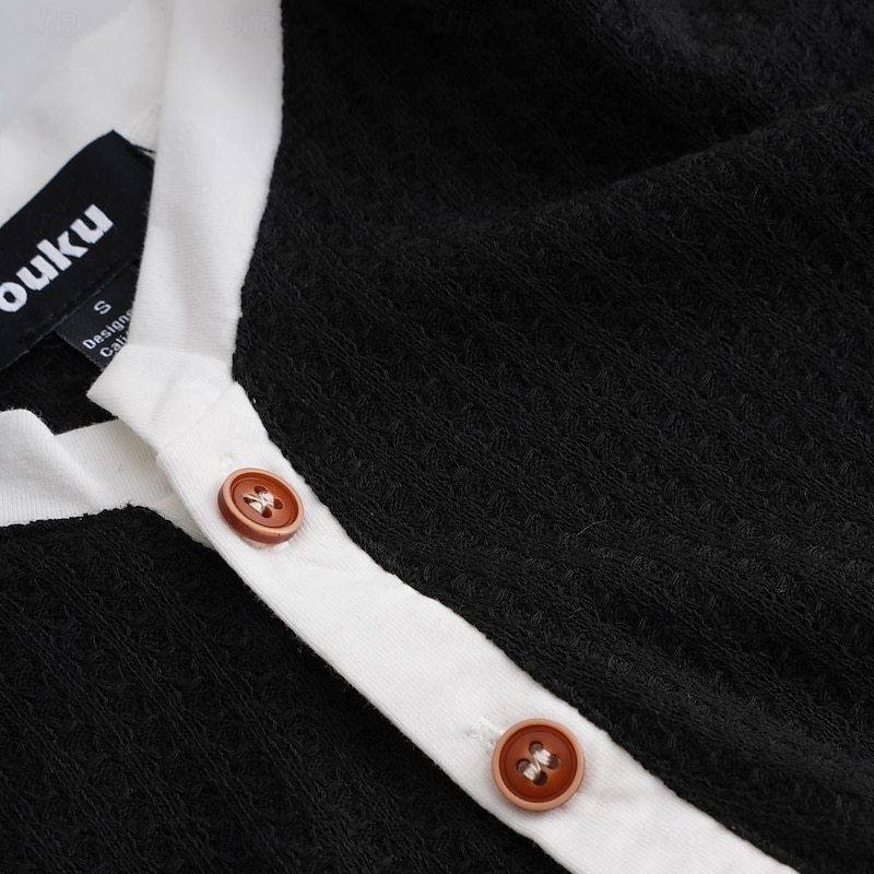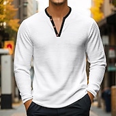 More information about Men's Waffle Henley Shirt Tee Top Long Sleeve Shirt Long Sleeve Henley Summer Solid Color Fashion Designer Comfortable Buttons V Neck Outdoor Casual Daily Black White Blue Top Tee for Men
