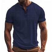More information about Men's Button T Shirt T Shirt Henley Shirt Tee Short Sleeve Henley Summer Solid / Plain Color Fashion Designer Fashion Vacation Street Going out Navy Black White Top Tee for Men
