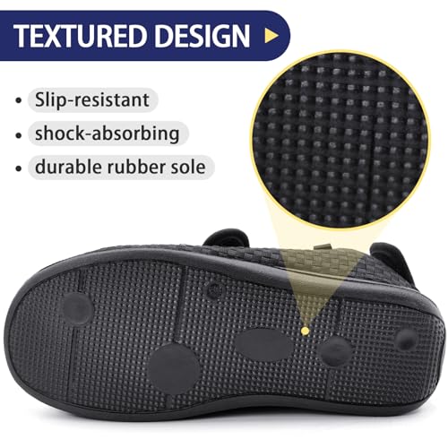 • ✔️【Extra Wide Design】Adjustable unisex diabetic slippers with Velcro straps, specially designed for wide feet, fat feet, swollen feet, painful feet, edema feet, hallux toe valgus, clubfeet, trouble walking disabled feet, deformed feet, bariatric, orthopedic surgery, lymphedema, plantar fasciitis, bunion.