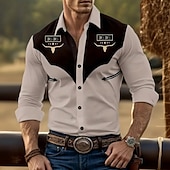 HOT ! Men's Cow Print Shirt Western Shirt Cowboy Shirt Long Sleeve Vintage Retro Outdoor Vacation Spring Fall Turndown 3D Print Linen Like Shirt Apricot