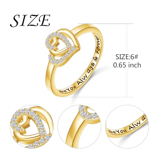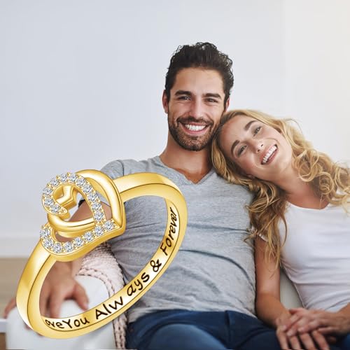 • 【Gold rings for women】:The gold heart ring is outlined in the shape of two hearts by beautiful lines ,it means heart linked to heart."Love You Always & Forever" engraved on the inside of the ring.It is a good present to express your sincere emotions for her.