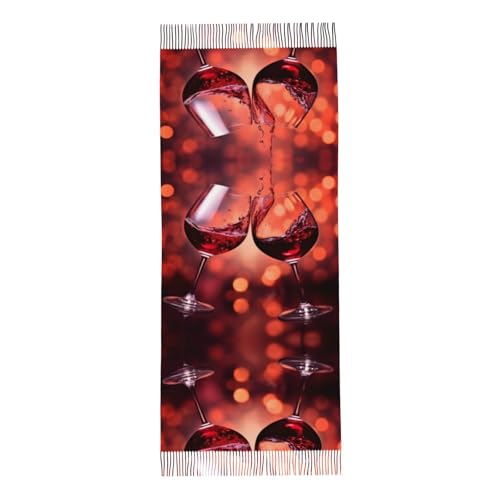 Red Wine Glass Cheers Print Tassel Scarf For Women Pashmina Soft Cashmere Scarf 1