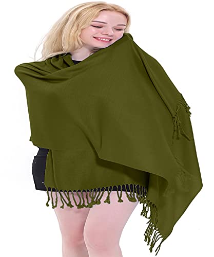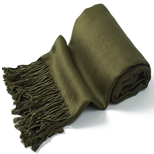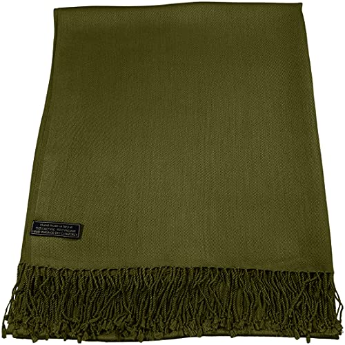 CJ Apparel Olive Green Solid Color Tassels Design Nepalese Shawl Scarf Wrap Stole Throw Head Wrap Pashmina Hand Made in Nepal New 2