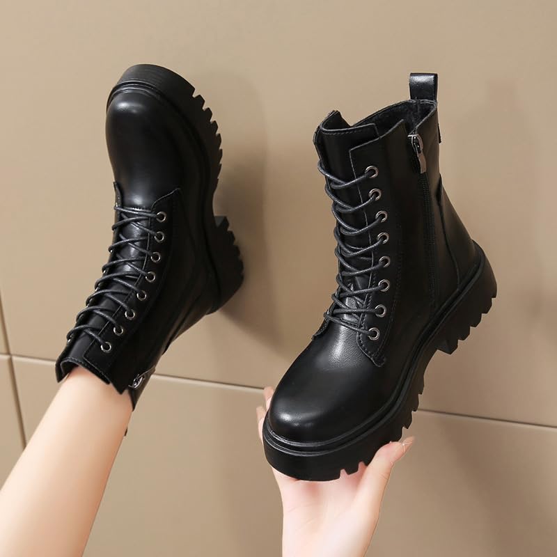 • Stylish Combat & Ankle Boot Fusion: These women’s combat boots blend a lace-up front and side zipper, merging military/motorcycle edge with ankle boot comfort—ideal for gothic, casual, or edgy outfits.