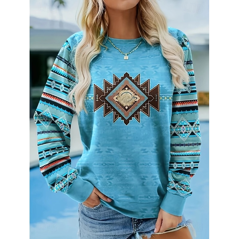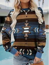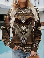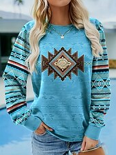 More information about Women's Pullover Sweatshirt Graphic Paisley Warm Vintage Western Long Sleeve Crew Neck Regular Tops Street Dailywear Casual Print Blue Brown Dark Blue Spring Fall Winter