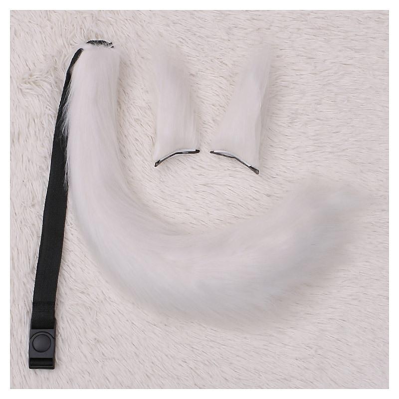 Faux Fur Animal Fox Wolf Ears Headband Tail Set Animal Costume Kit Hairpin for Party Halloween Fancy Dress Cosplay Kids Adult 25