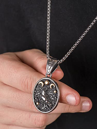 HAQUIL Raven Necklace, Wiccan Raven Triple Moon Goddess Charm Pendant, Raven Jewelry Gift for Men and Women 5