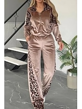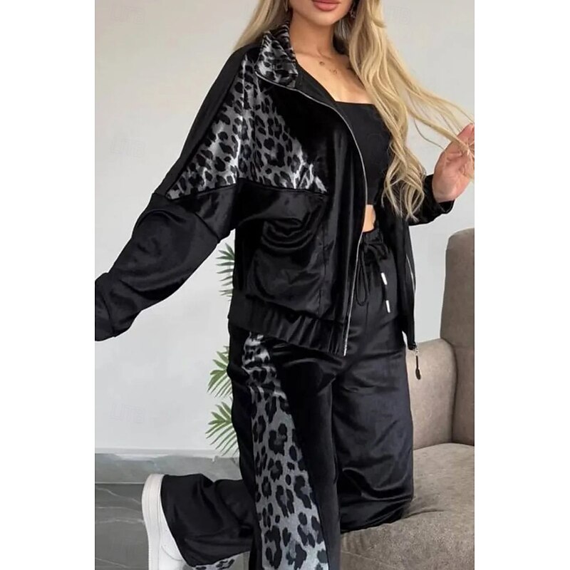 More information about Women's Fashion Streetwear Pants Sets Bolero Top Long Sleeve Shirt Collar Solid Color Zipper Outdoor Work Casual Black Khaki Gray Fall Regular Fit