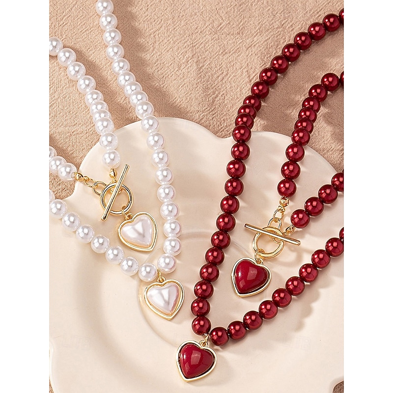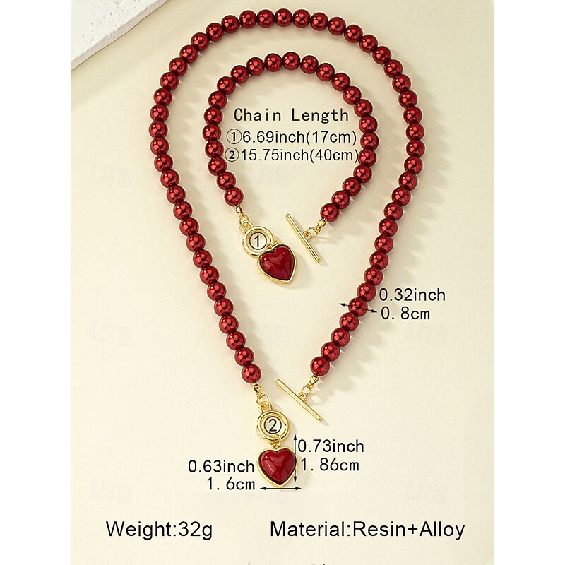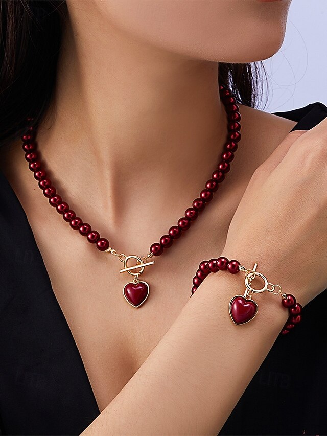 $11.99 - Women's Red Pearl Necklace and Bracelet Set with Heart Pendant, Gold-Tone Clasp Design, Elegant Jewelry for Valentine's Day Gift, Weddings, and Special Occasions 2025. Shop for cheap Women's Necklace online? Buy at lightinthebox.com on sale today!