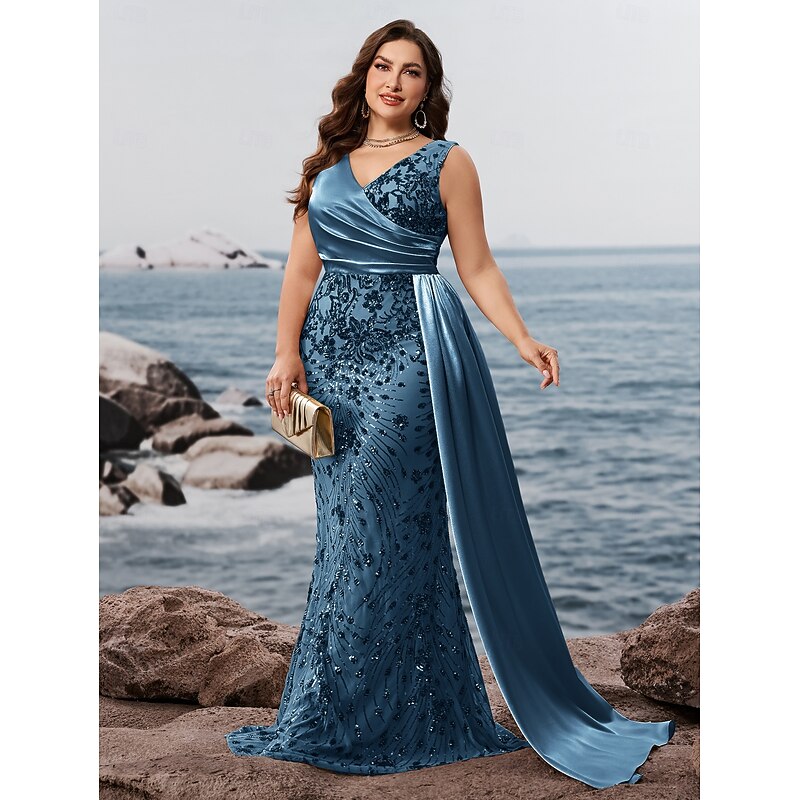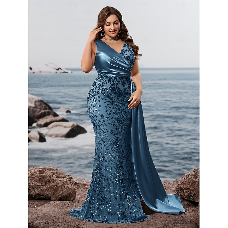 $129.99 - Mermaid / Trumpet Evening Gown Sparkle Formal Dress Wear Long Length Sleeveless V Neck Capes Sequined V Back with Sequin 2025. Shop for cheap Ball Gown Evening Dresses online? Buy at lightinthebox.com on sale today!