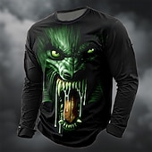 More information about Halloween Men's 3D Werewolf T Shirt Long Sleeve T shirt 3D Print Crew Neck Shirt Fashion Exaggerated Street Casual Daily Blue Green Gray Summer Spring Fall Clothing Apparel S M L XL XXL XXXL
