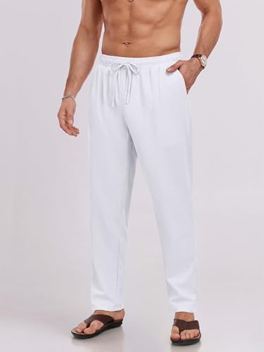 HOT ! Puimentiua Mens Linen Pants Casual Drawstring Loose Lightweight Mens Pants Yoga Summer Beach Trousers