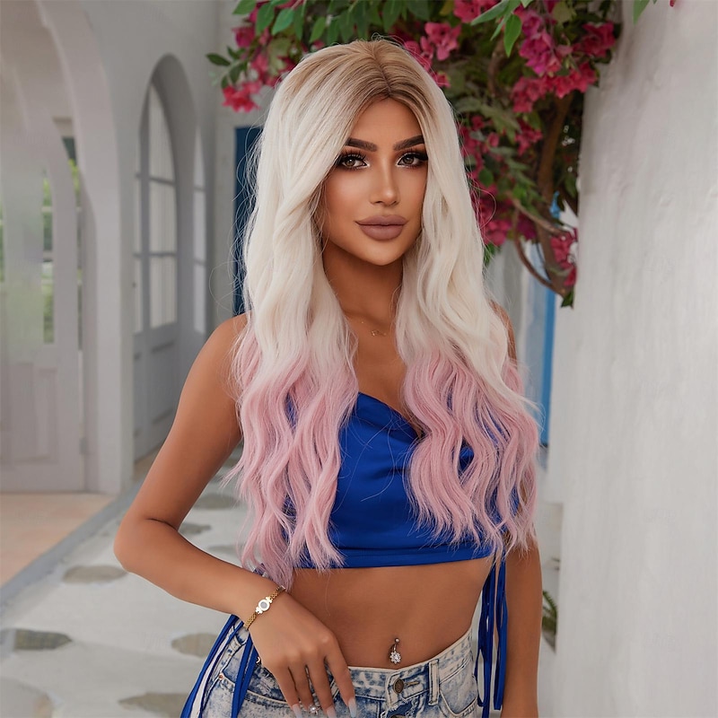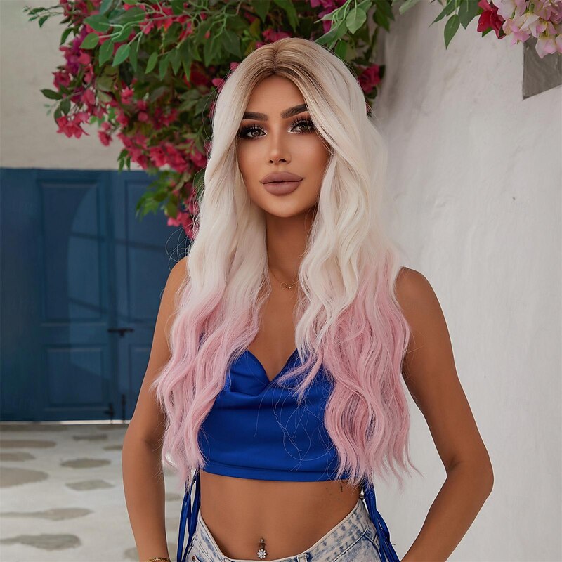 Synthetic Wig Uniforms Career Costumes Princess Straight kinky Straight Middle Part Layered Haircut Machine Made Wig 26 inch Red / White Synthetic Hair Women's Cosplay Party Fashion Pink 2