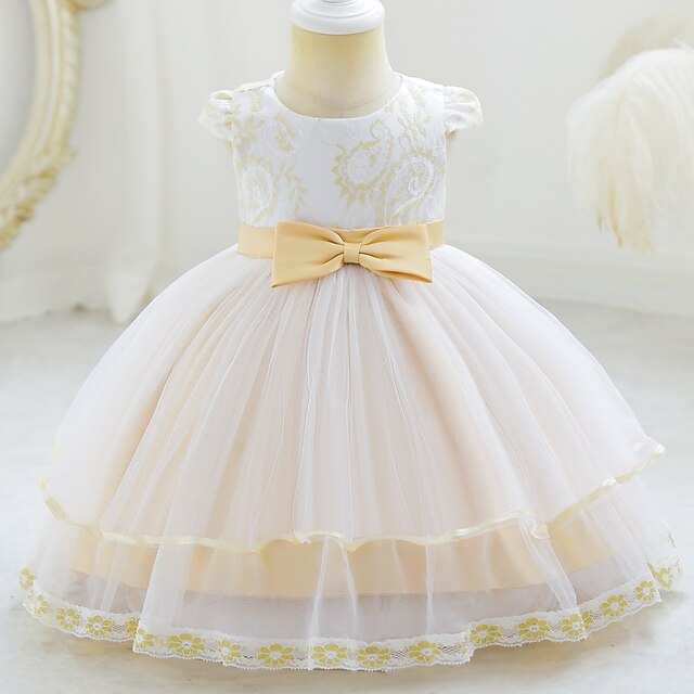 More information about Toddler Girls' Dress Flower Sleeveless Performance Party Mesh Cute Polyester Knee-length Tulle Dress Summer Spring 0-3 Years Gold