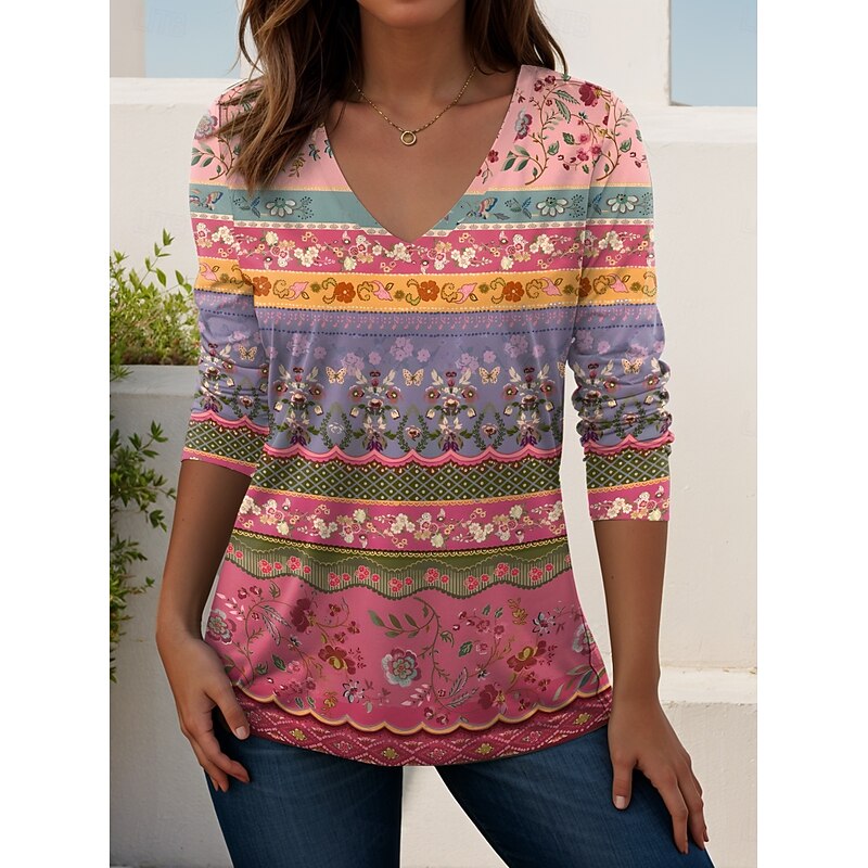 HOT ! Women's T shirt Long Sleeve V Neck Long Sleeve Tunic Graphic Plants Vintage Elegant Bohemia Vintage Regular Tops Daily Going out Weekend Print Black White Pink Dusty Rose Red Spring Fall Prefall