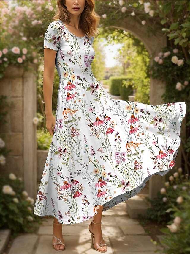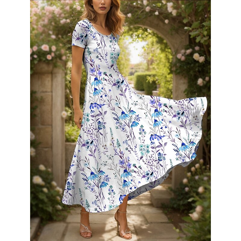 Women's Maxi Dress Casual Dress A Line Dress Summer Dress Elegant Vacation Casual Regular Fit Floral Graphic Short Sleeve Square Neck Red Blue Purple Summer 2