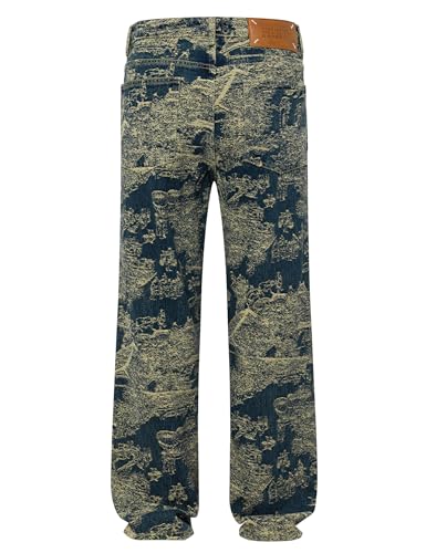 HOT ! Men's Jacquard Woven Denim Loose Straight Jeans