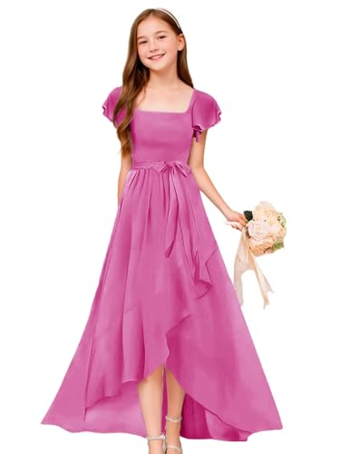 • Features: Chiffon Junior Bridesmaid Dresses for Girls, Square Neck Flower Girl Dresses for Wedding, Short Sleeve Teens Birthday Party Dresses, Floor Length Chiffon First Communion Dress.