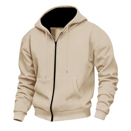 HOT ! Men Long Sleeve Full Zip Casual Hoodies, Long Sleeve Loose Comfy Fall Trendy Sweatshirts Going Out Casual Tops with Pockets