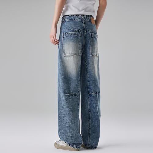 Fit Dark Blue Jeans Men Custom Pleated Effect Wide Leg Pants 6
