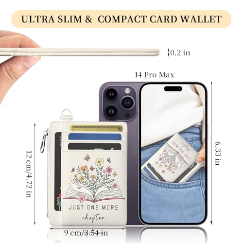 • Small But Roomy: Small card wallet use unique bookshelves books floral flower butterfly design with “JUST ONE MORE CHAPTER” on the outside, it can be worn as a daily accessory. Mini credit card holder measuring only 4.72x 3.54 x 0.2 inches, thin and lightweight for easy carrying, ultra slim wallet allows you to bring it along in your front pocket, handbag, backpack, purse and travel bag without any bulk