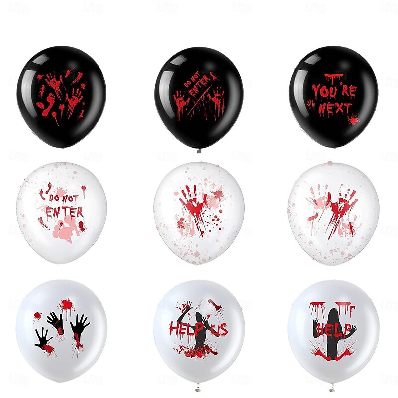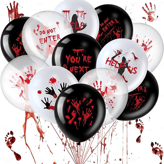 $12.99 - 18pcs Scary Halloween Balloons 12 Inch - Blood Splatter & Horror Phrases Latex Balloons with Eye Design Zombie Handprints Black & White Decor for Vampire Birthday Party Supplies Spooky Balloon Des 2025. Shop for cheap Party Supplies online? Buy at lightinthebox.com on sale today!