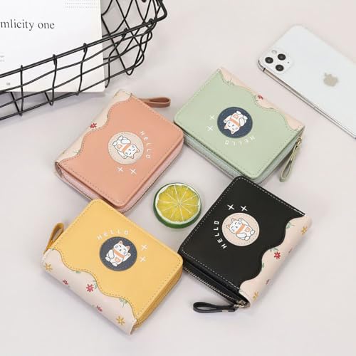 Women's Small Purse, Women's Small Purse with Many Compartments, Children's Wallet with Large Coin Compartment, Purse Children with Cute Cat Motif, yellow, 11,5*3*9cm, Casual 5