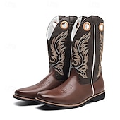 Men's Brown and Black Western Cowboy Boots – Embroidered Tall Riding Boots for Country Events, Rodeos and Music Festivals 28