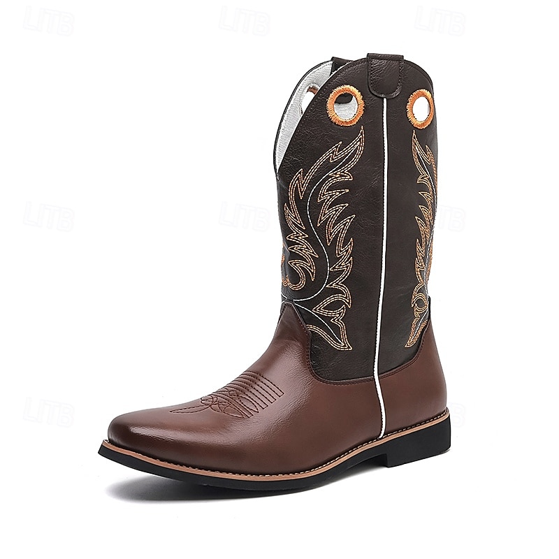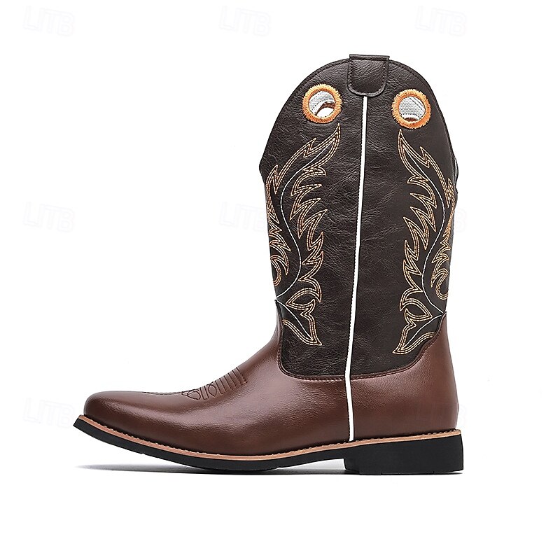 Men's Brown and Black Western Cowboy Boots – Embroidered Tall Riding Boots for Country Events, Rodeos and Music Festivals 37